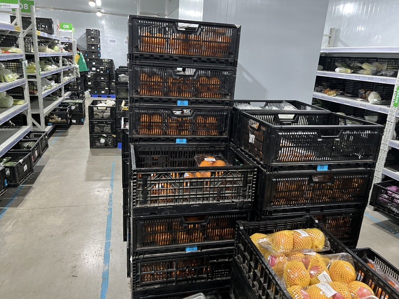 美团买菜逸仙路站点内,蔬菜、水果等货物充足。