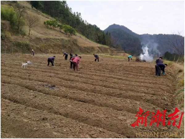 无独有偶,在辰溪县谭家场乡高坪村,伴随着春天的脚步,农户杨花一家也在抢抓农时,有条不紊地开展着田地里的整理工作。