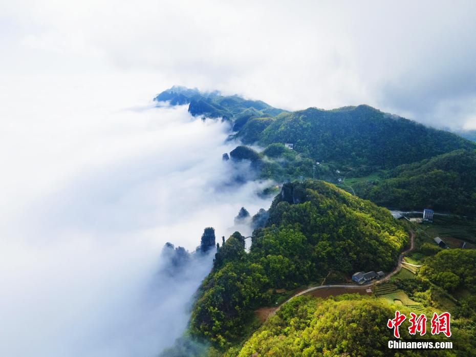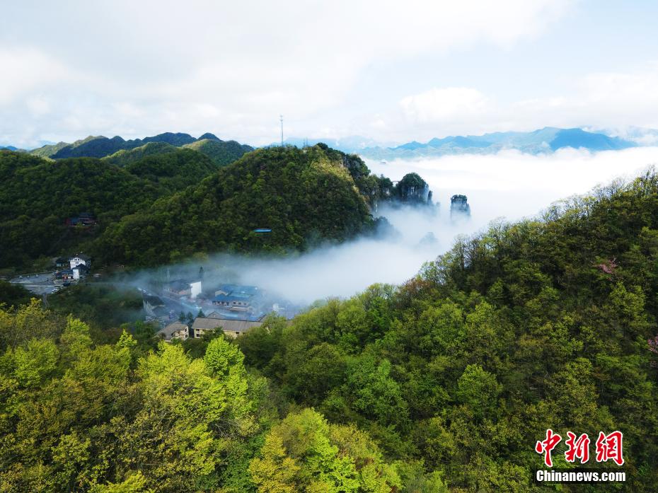 近日,在湖北省五峰土家族自治县,柴埠溪大峡谷的云海、峡谷、绿树、流水共同构成了大山里的“千里江山图”,描绘着大好时节的无限春光。柴埠溪大峡谷面积80平方公里,是以绝壁石林、峡谷清溪、原始生态和土家风情为特色的国家森林公园、国家地质公园。周磊 摄