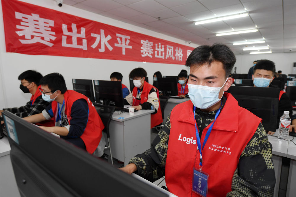 4月27日,参赛选手在2022年贵州省职业院校师生技能大赛暨全国职业院校技能大赛选拔赛“现代物流综合作业”赛项中进行职业素养考核。新华社发(邓刚摄)