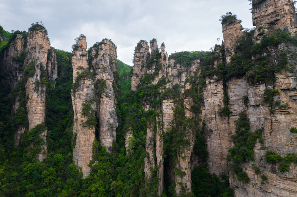 这是4月20日拍摄的武陵源风景名胜区杨家界峰墙景观(无人机照片)。新华社记者 赵众志 摄