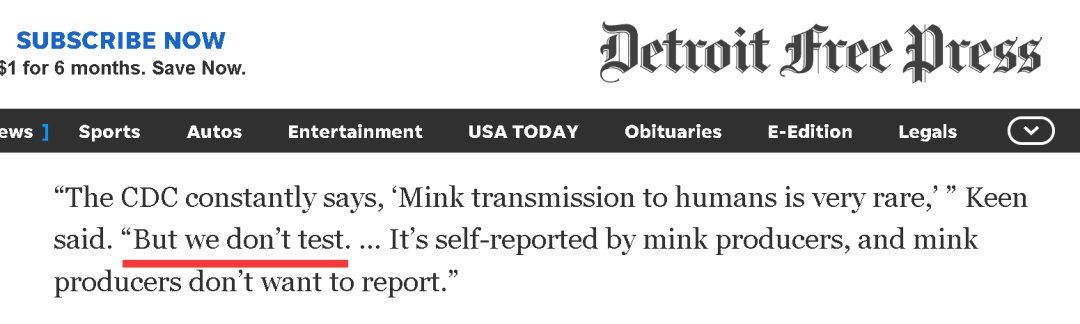 毕竟,如果美国根本没有在水貂传人这方面进行主动检测的话,自然就不会“有证据”去证明水貂在疫情中扮演的角色了……