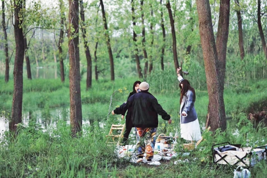 湘江一号对面草坪露营野餐。组图/彭心薏
