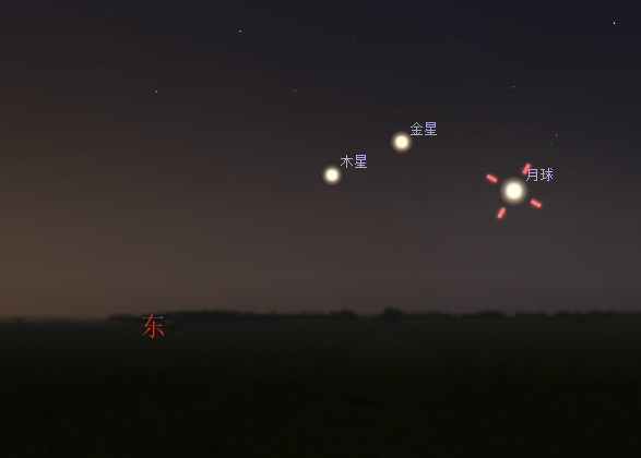 △4月27日凌晨木星、金星、月球相对位置示意图 图源:星图软件