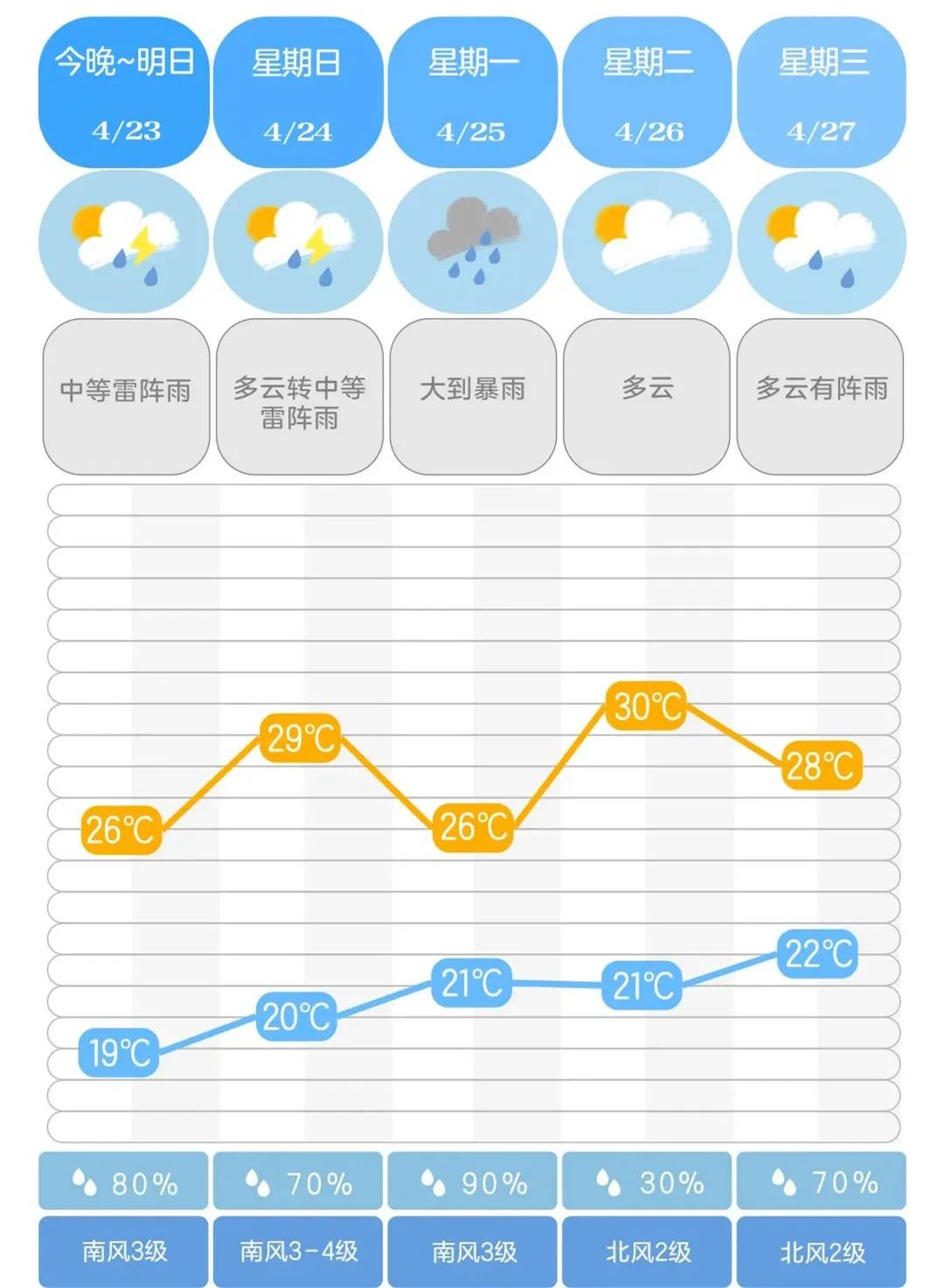 未来一周雨日、雨量偏多,其中22日湖南南部局地暴雨、24至25日自北向南局地暴雨,伴有短时强降水、雷暴大风等强对流天气;