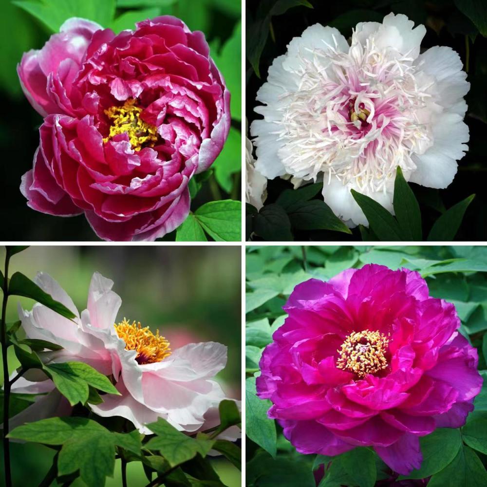 4月13日在河南洛阳隋唐城遗址植物园内拍摄的牡丹。(拼版照片 新华社记者 李安 摄 )