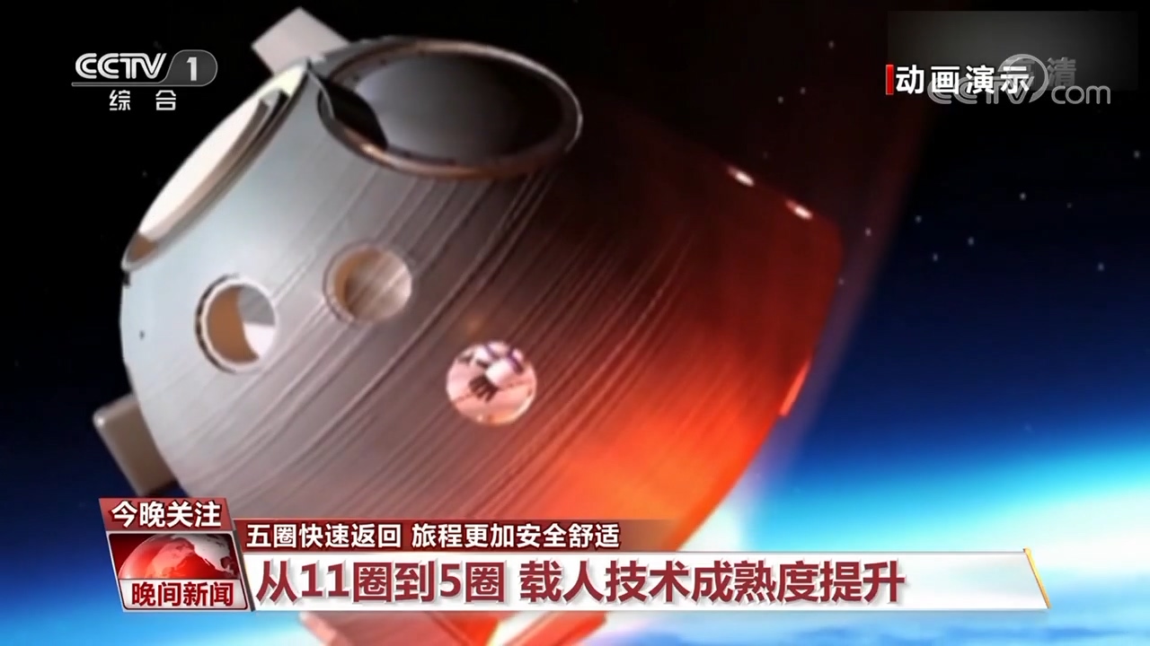 其实,神舟飞船的硬件和软件都没有更改,而是随着任务成熟度的提高,飞船返回流程作了更合理的编排,从标准的11圈缩短到5圈,体现出我国载人任务技术的不断成熟。