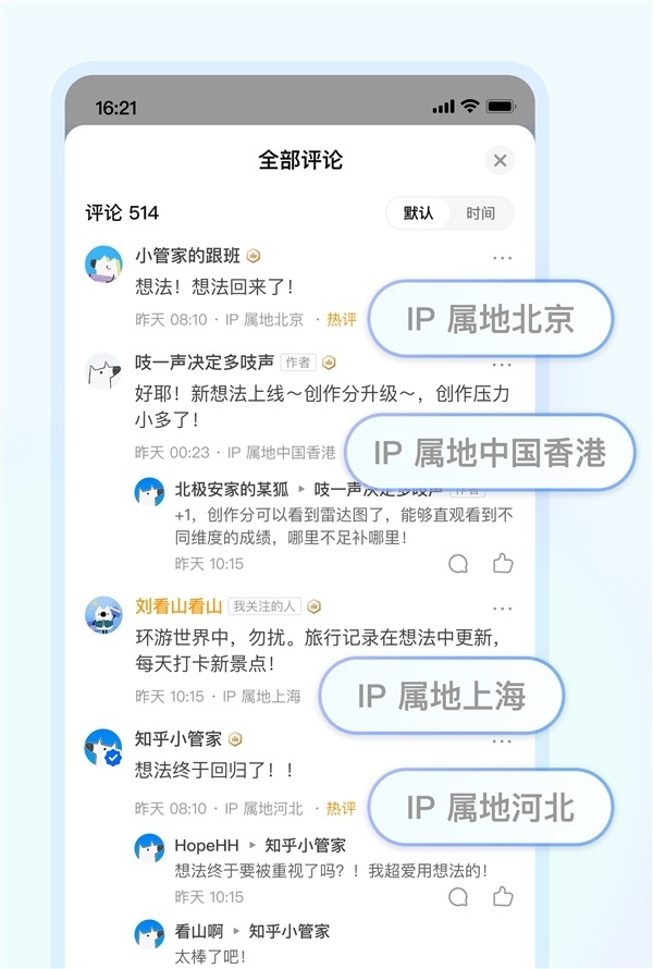 知乎、百家号也宣布将开放“用户IP属地”公开显示