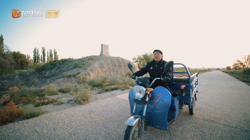 《与丝路打交道的人》首播第一期,新疆文物考古研究所荣誉所长伊弟利斯一段“镜中我”的对话形式新颖,抓住了观众眼球。他坐在灯光下笑呵呵的与自己对话, 激动回顾将毕生光阴投身于沙漠考古的故事。中国社科院考古研究所研究员郭物的出场则更为戏剧——在蜿蜒的戈壁古城中,他骑着破旧的蓝色三轮摩托缓缓驶来,像来邻居家串门一样高喊导演的名字,一边和路过的工人打招呼,一边送上中秋祝福,一来一回,一位节假日仍然坚守工作岗位、亲切可敬的考古工作者形象便跃然纸上,拉近年轻观众与丝路文化的距离。