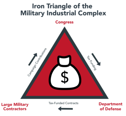 在这个庞大利益集团中,政客通过制造冲突来帮军火商促销,军火商赚的钱又反哺政客,给他们继续增加军费的动力。