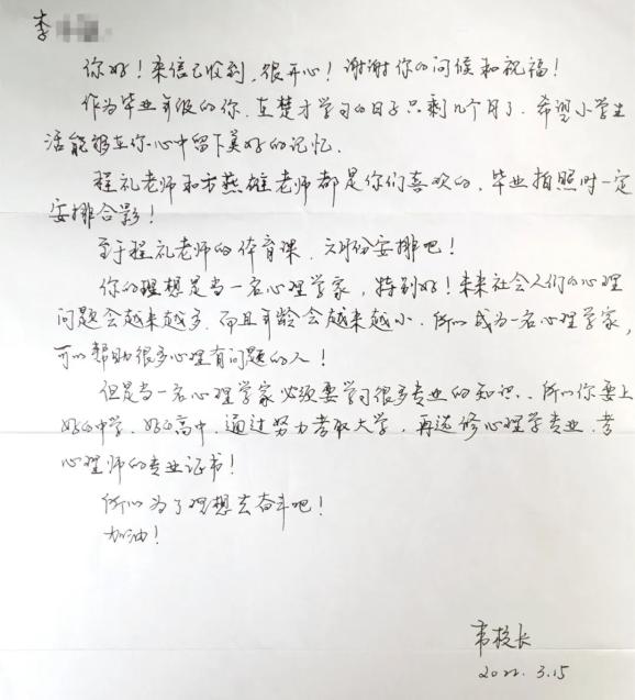 “有的人用纸笔记录历史,有的人用奋斗构筑梦想,韦莉校长用信向学生传递爱的温度。”