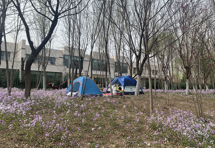 在一些公园的露营区,很少见到便利店、自动售货机等配套设施。能过夜的大运河森林公园野营地,是很多露营爱好者的首选。清明假期的前一天,刘女士下午3点多就已经在平台上搭好了帐篷,就等着老公去学校接孩子回来,他们一家三口就可以在这里度过小长假了。三天的吃喝都要在这里解决,为此刘女士一家做了充足的准备。“卫生间就在附近,洗手洗脸基本没问题,喝的水我们也提前买好了。”刘女士遗憾地说,如果公园里能增设小超市或自动售货机就更好了,“孩子嘴馋了,就地就可以买些零食或饮料,就不用开车再出去找了。”