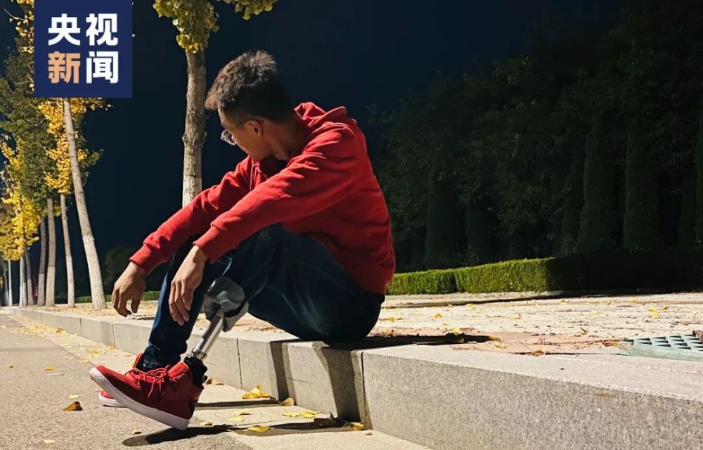 飞出的铁块把梁开宇的左腿炸伤,不幸截肢