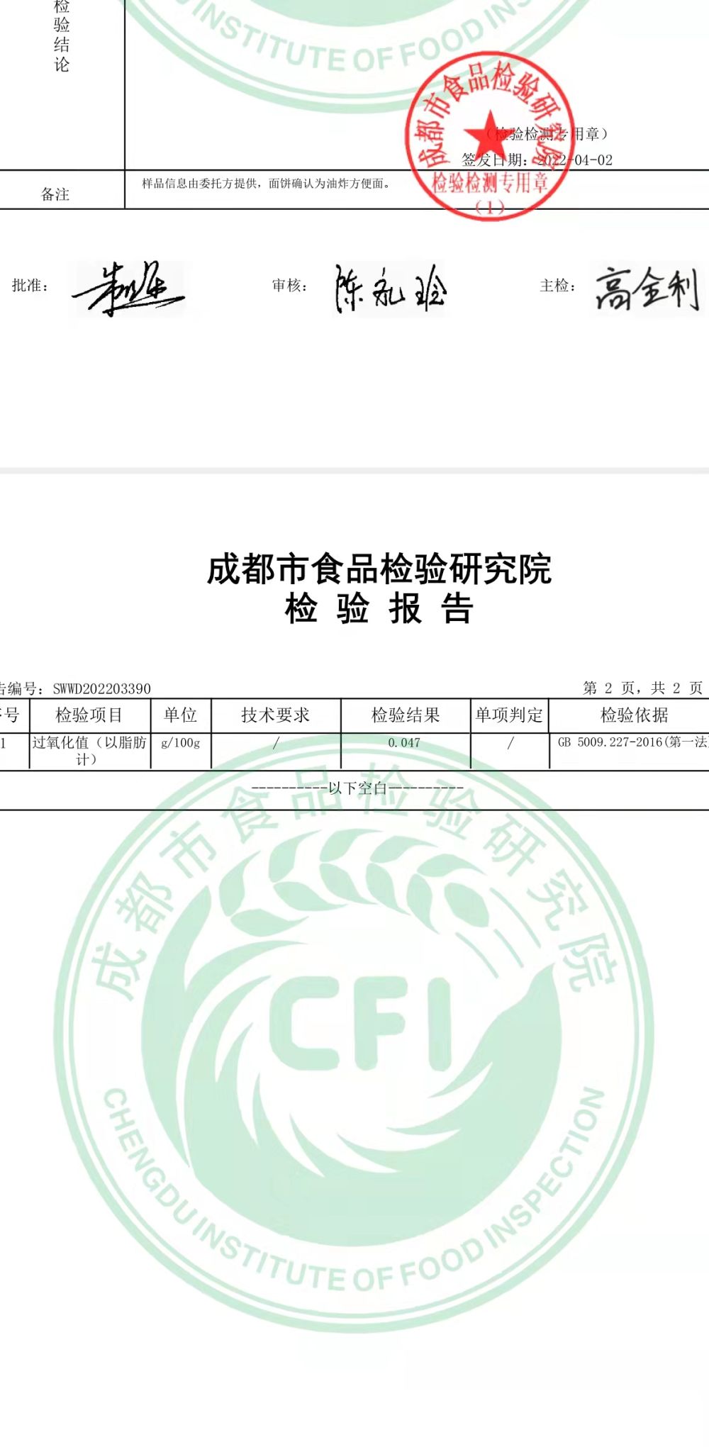 检测报告显示过氧化值超标