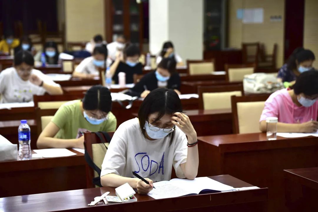 2020年8月,北京市朝阳区,某中央事业单位招聘考场上考生在认真答卷(图 | 人民视觉)