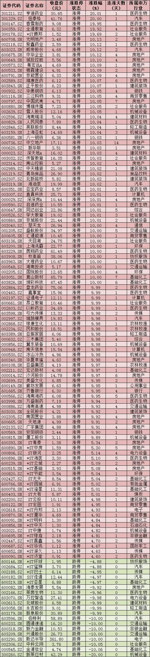 周三(4月6日),房地产板块持续走强,截至收盘,板块涨幅居首达3.36%,17只个股批量涨停,中交地产7连板,中国武夷4连板。