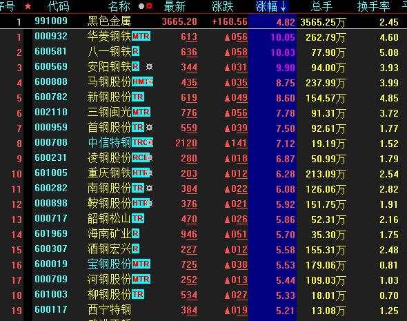 热点二:黑色金属崛起 涨幅居首达4.82%