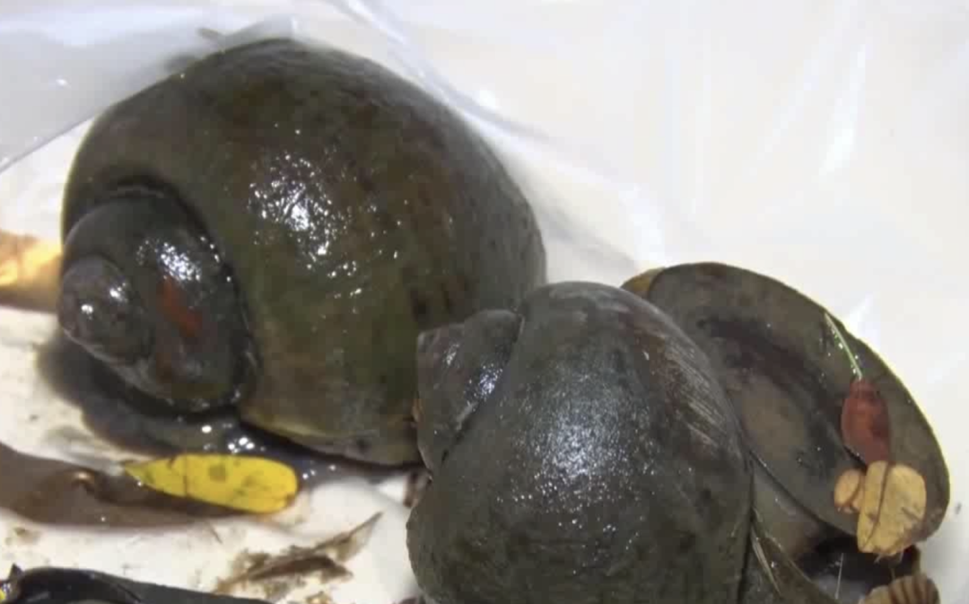 公园工作人员介绍,福寿螺一般生长在水质环境比较好的浅水区,或者是水生植物的杆上,“四月份到六月份是很适合福寿螺生长繁殖的季节,晚上的时候,福寿螺就会到岸边来产卵。”