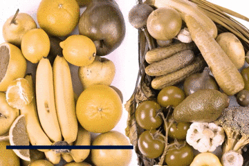 我们换一组图片对比,普通人眼中的蔬菜瓜果长这样: