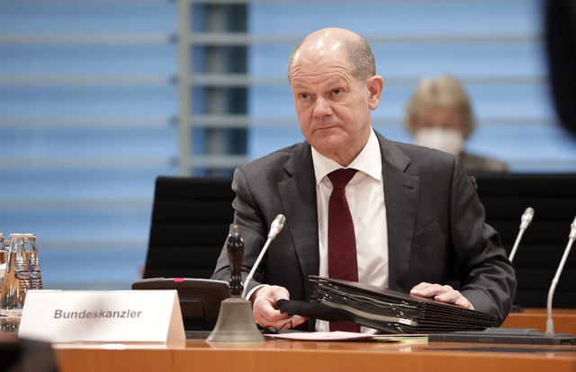 ▲当地时间3月30日,朔尔茨在德国柏林出席内阁会议