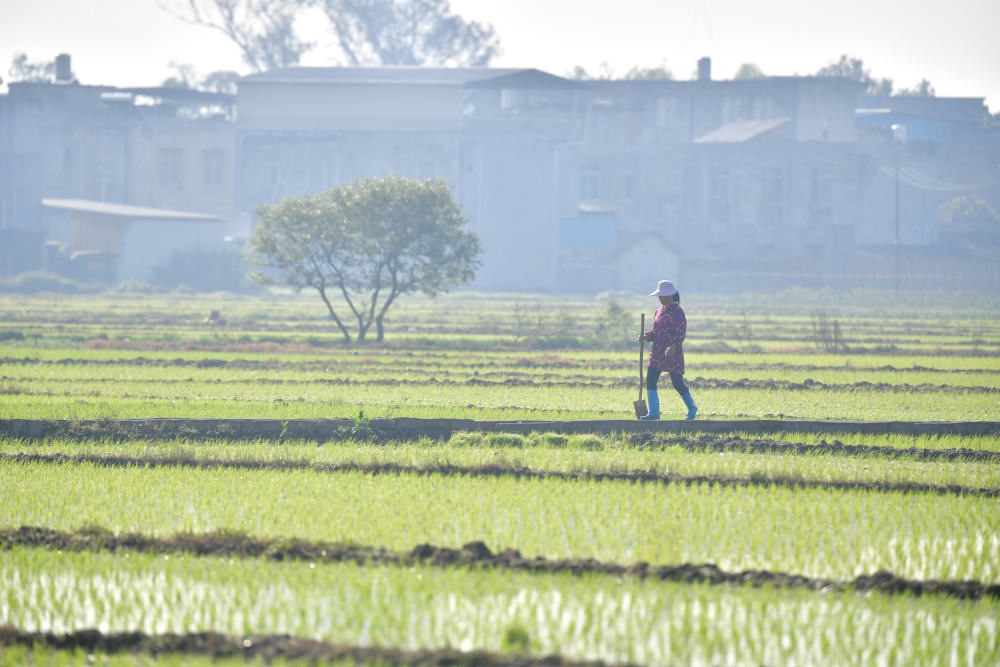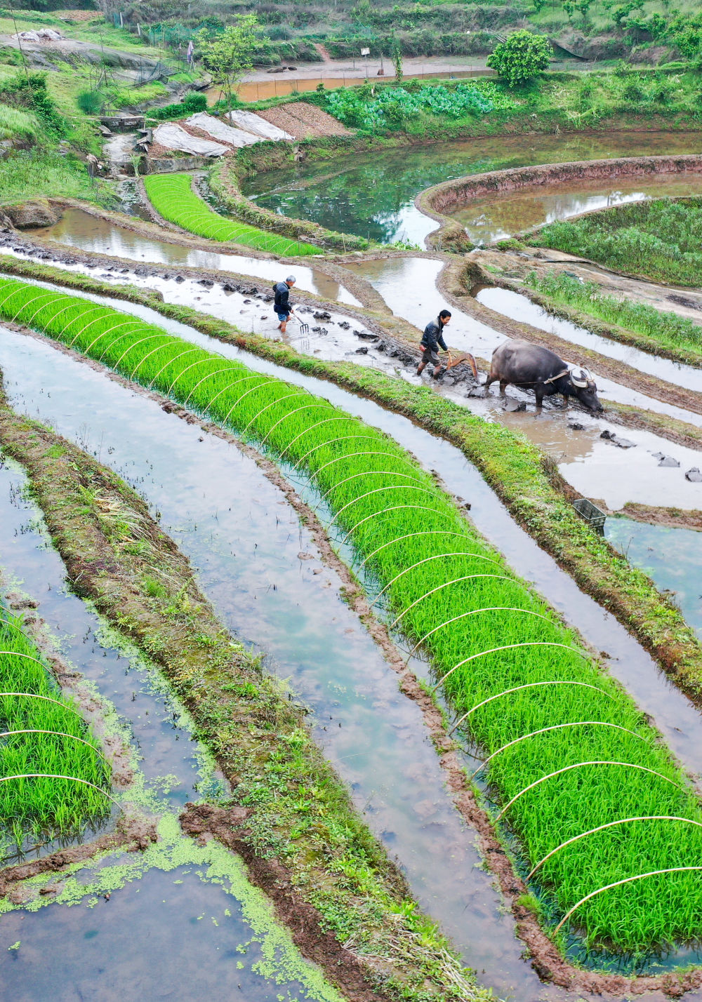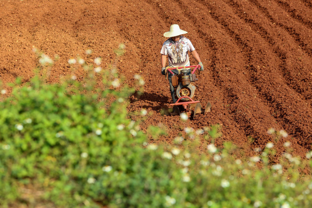 4月4日,在广西南宁市邕宁区蒲庙镇新生村,农民在田间忙碌耕作。