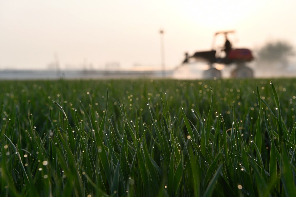 4月4日,在河北省石家庄市栾城区南高乡南高村,植保人员驾驶植保机械在麦田里工作。新华社发(李明发摄)