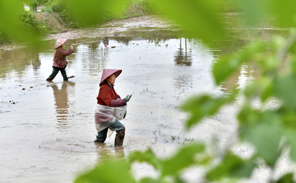 4月4日,在张家界市武陵源区协合乡杨家坪村,当地农民在田间播种。