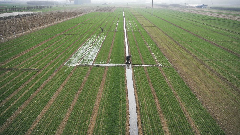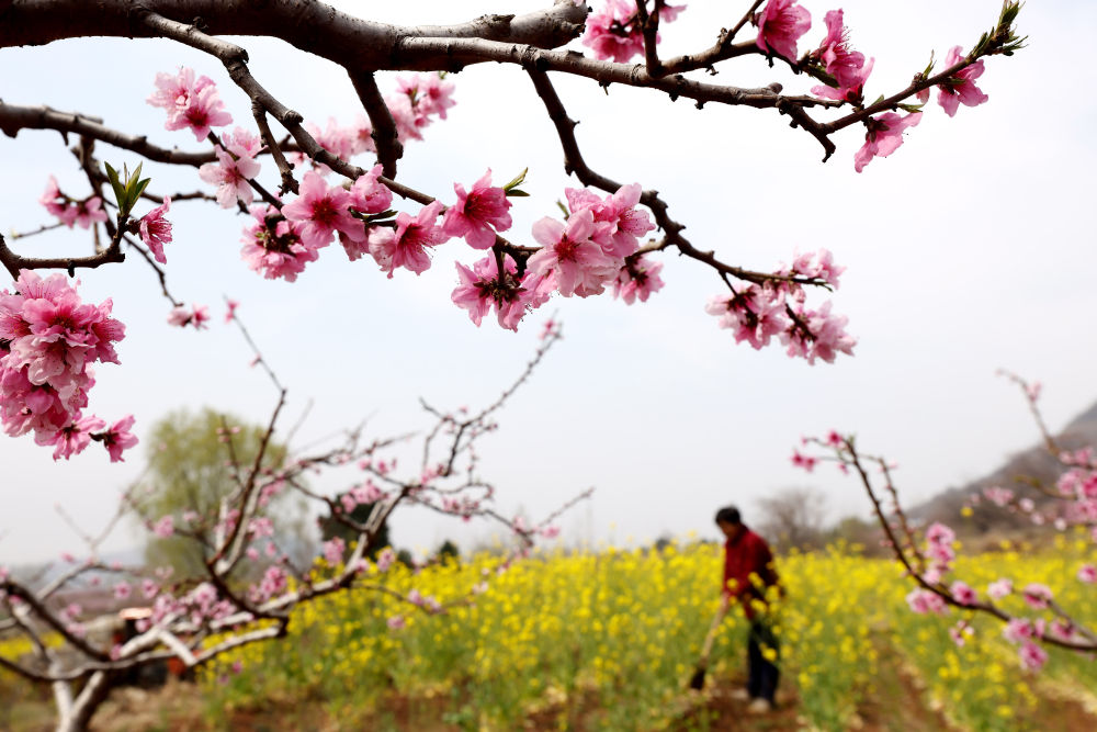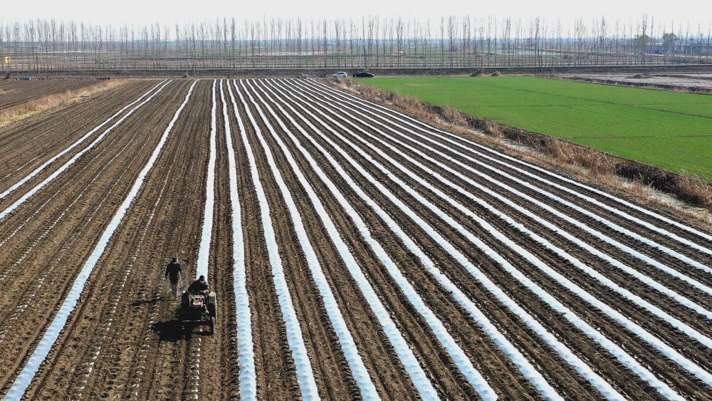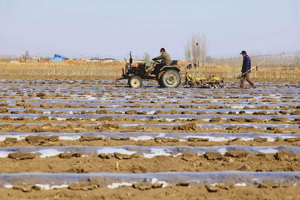 4月4日,在江苏省连云港市朝阳街道韩李村,农民在田间劳作。