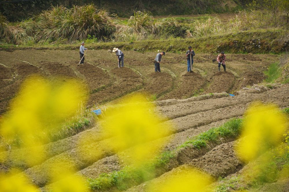 4月4日,村民在贵州省遵义市余庆县白泥镇团结村田间劳作。