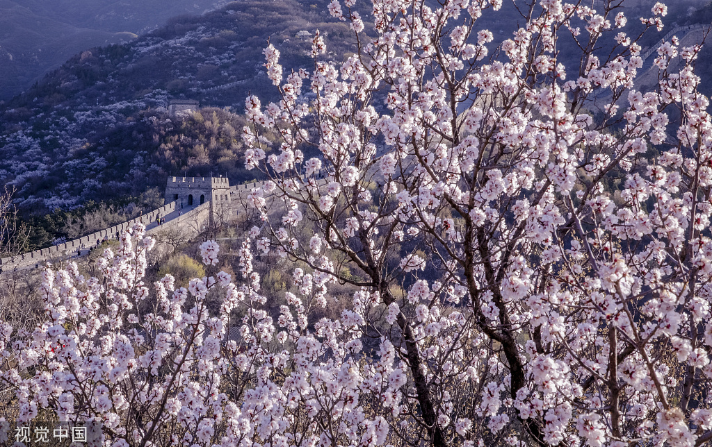 北京延庆八达岭,杏林春晚,花漾长城。杨东/视觉中国