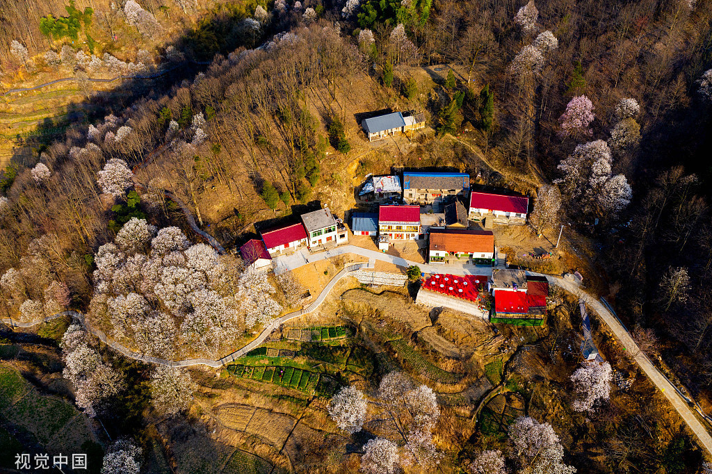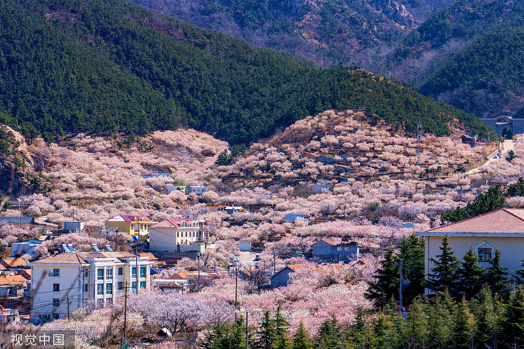 山东青岛崂山北宅,漫山遍野开满了樱桃花。 戚本祥/视觉中国