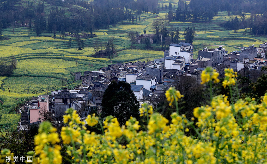 云南省曲靖市罗平县,雨水节气,油菜花次第开放的乡村田园景致美不胜收。 杨峥/视觉中国
