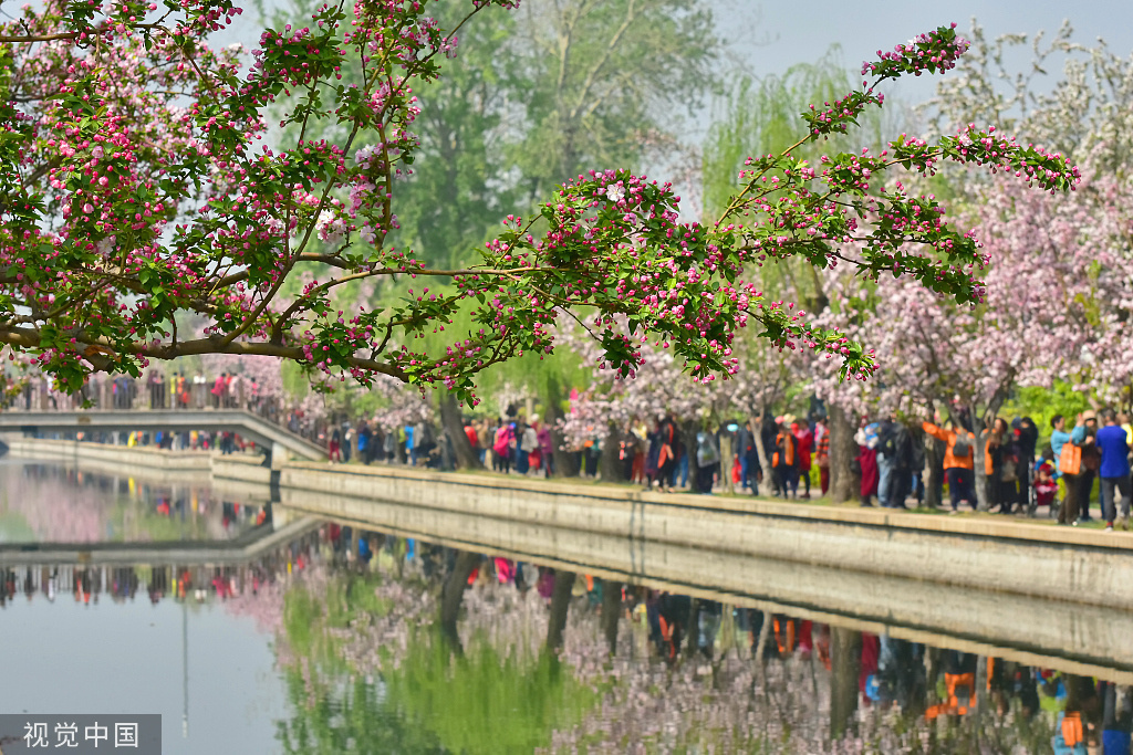 北京北土城海棠花溪海棠盛开,游人纷至沓来。 FRANK/视觉中国