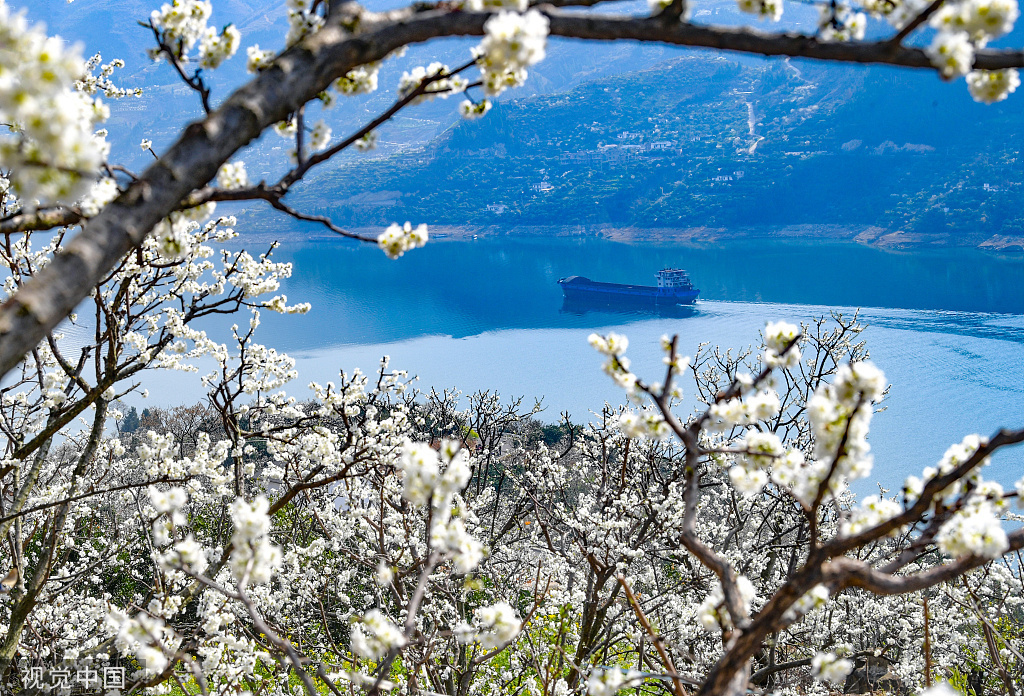 重庆,万亩李花在三峡两岸盛开。郑宇/视觉中国