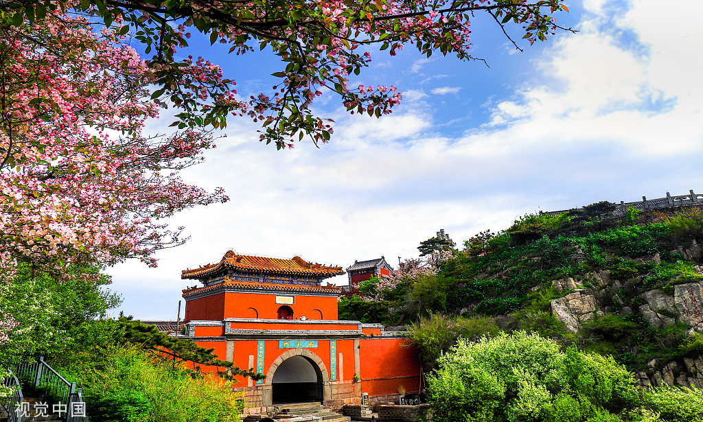 山东省泰安市泰山南天门景区,海棠花绽放。 王长民/视觉中国