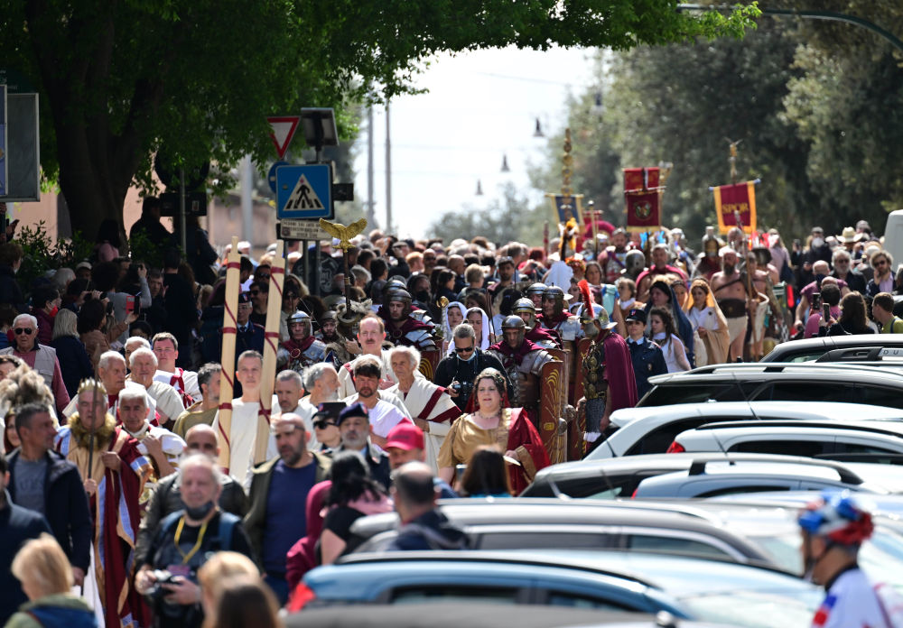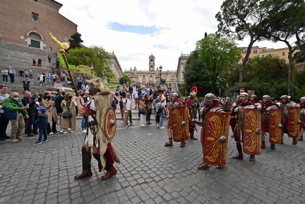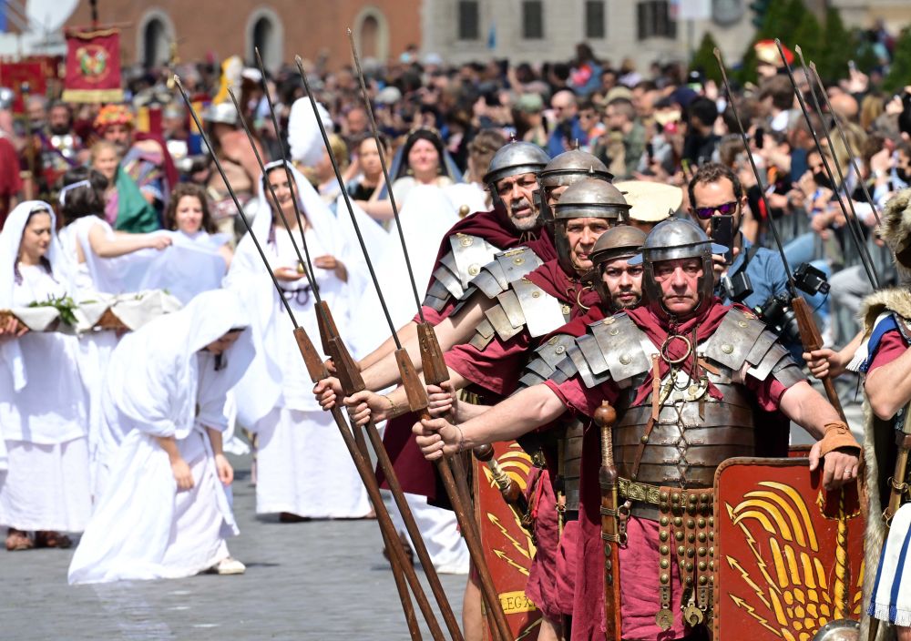4月24日,人们穿戴古罗马时期服饰,围绕罗马大竞技场、威尼斯广场和斗兽场等景点进行建城2775年庆祝游行。相传罗马建城日为公元前753年4月21日。