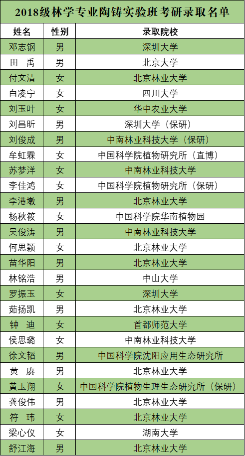 近日,这个班考研喜讯收到“手软”——该校林学院2018级林学专业“陶铸”实验班捷报频传。全班37人,27人被北京大学、中国科学院大学、四川大学、湖南大学等名校录取……升学率近73%,其中更有3个宿舍“组团”上岸……这个励志班级,在校园狠狠火了一把。