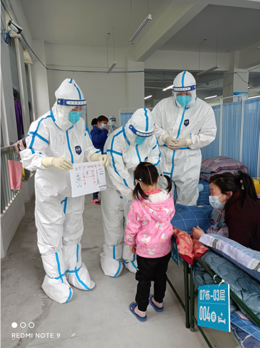 辰欣4月17日和奶奶一道住进古丹路方舱医院,爸爸妈妈也是医务工作者,此时正在别处抗疫。