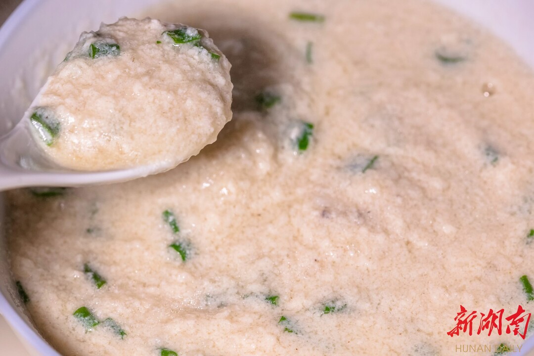 “这道菜叫作‘鸡茸’,同样是洪江的特色美食。”古商城的“顺发油号”饭店,一道特别的菜品引人注目。