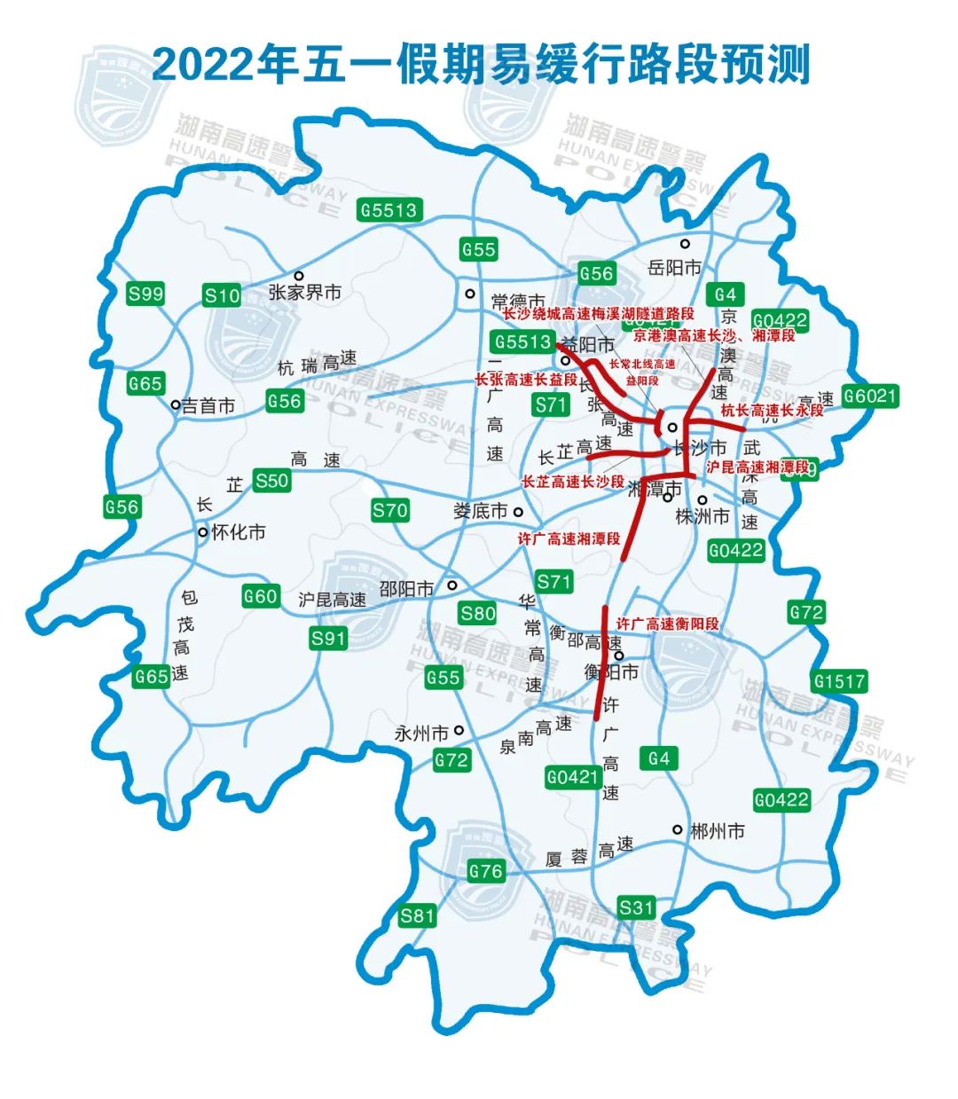 根据当前疫情防控形势情况,预测五一假期环长沙、国家主干线、市州城市周边部分收费站外因疫情防控查验,易出现间歇性排队缓行现象。主要体现在: