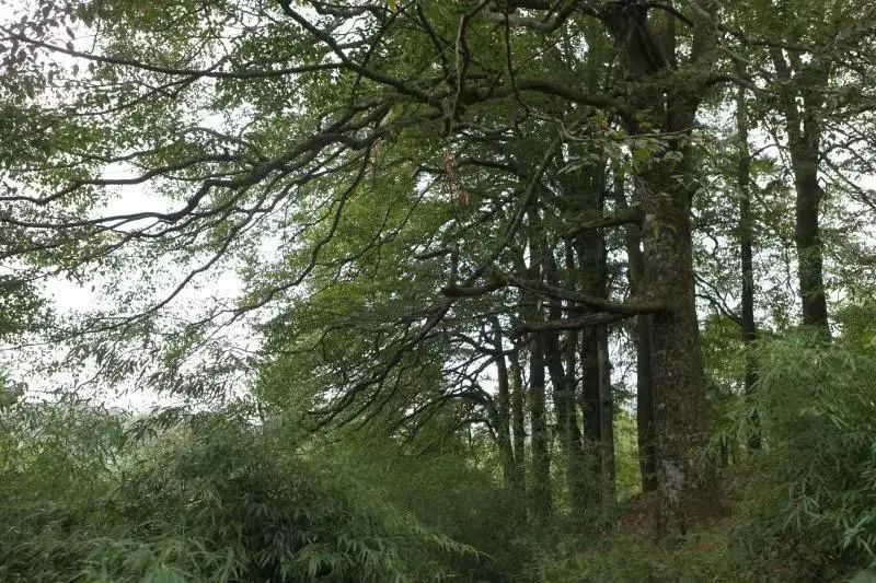 树林里的古树多是槲栎、枹栎、水青冈等杂木,树龄一百到一千年不等。在常规条件下,这些树木是很难长大的。但在崇木凼,因为自然环境良好,加之当地居民保护有方,这些树木生长得特别好,显示出一种生生不息的昂扬之气。