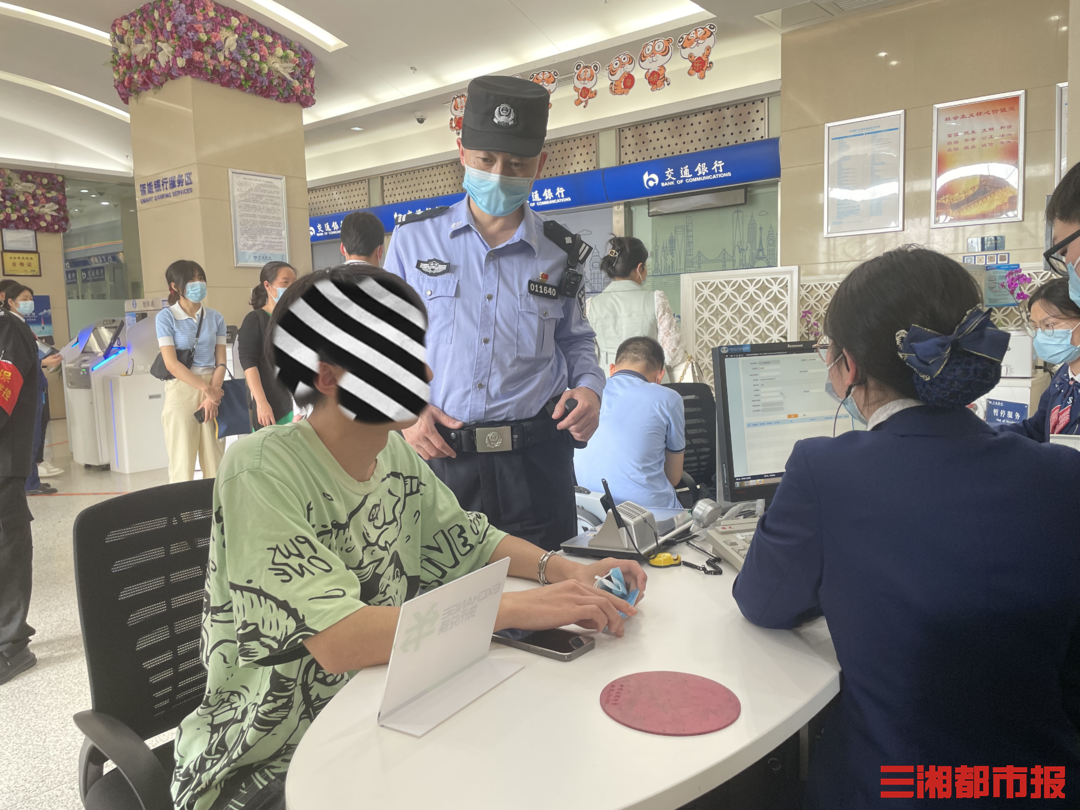 见状,银行工作人员立即启动应急预案。正在这时,长沙市公安局高新分局麓谷派出所社区民警欧阳卫平来银行网点作反诈例行巡检,工作人员及时将情况和疑点进行了报告。