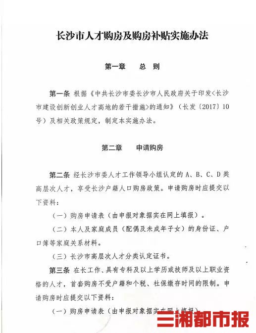 早在2017年8月18日,长沙就出台了《长沙市人才购房及购房补贴实施办法(试行)》,明确指出在长工作、具有专科及以上学历或技师及以上职业资格的人才,首套购房不受户籍和个税、社保缴存限制。