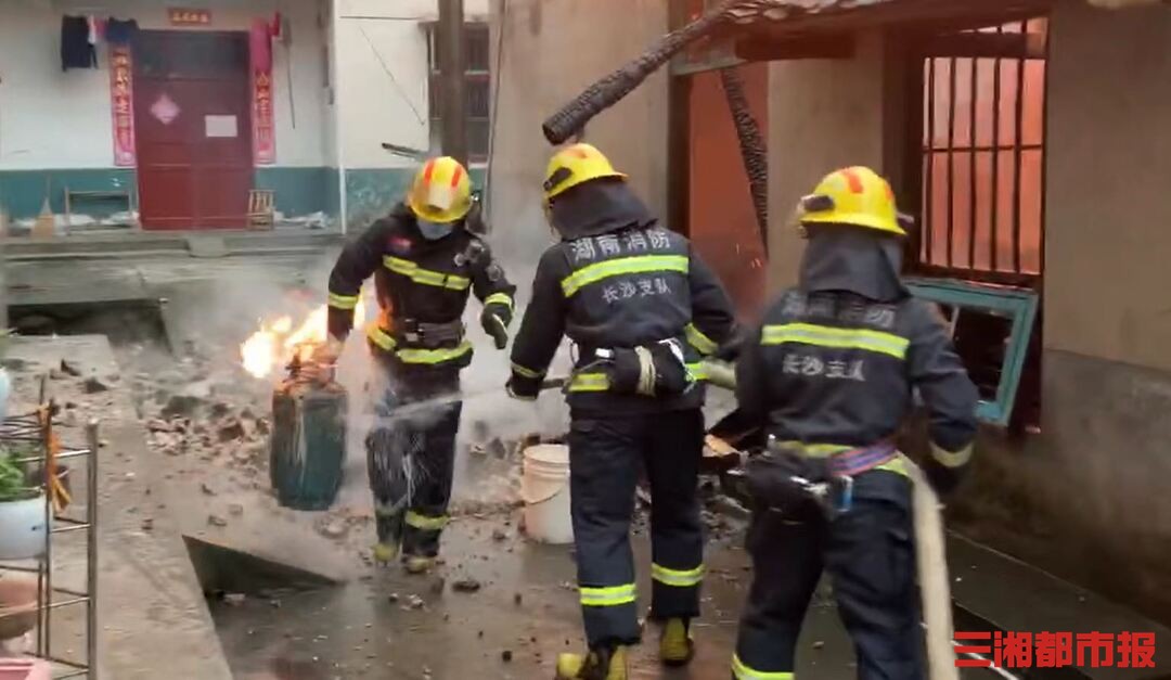 三湘都市报·新湖南客户端4月14日讯(全媒体记者 张洋银 通讯员文稳 唐祥照) “幸亏消防员及时赶到灭了火,要是发生爆炸,房子都没了。”4月13日,长沙岳麓区莲花镇曾家桥村一民房着火,煤气罐被引燃,危急时刻,消防员徒手拎出“定时炸弹”,完成惊险救援,赢得群众点赞。