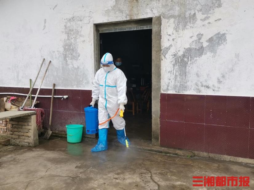 4月5日中午12点,湘乡市疾控中心流调机动队的成员胡林娜、彭林祥接到通知,龙洞镇长太村有一名从广东佛山回来的次密接者。来不及吃午饭,两人和其余几名机动队成员迅速准备流调采样消杀物品,赶赴现场。