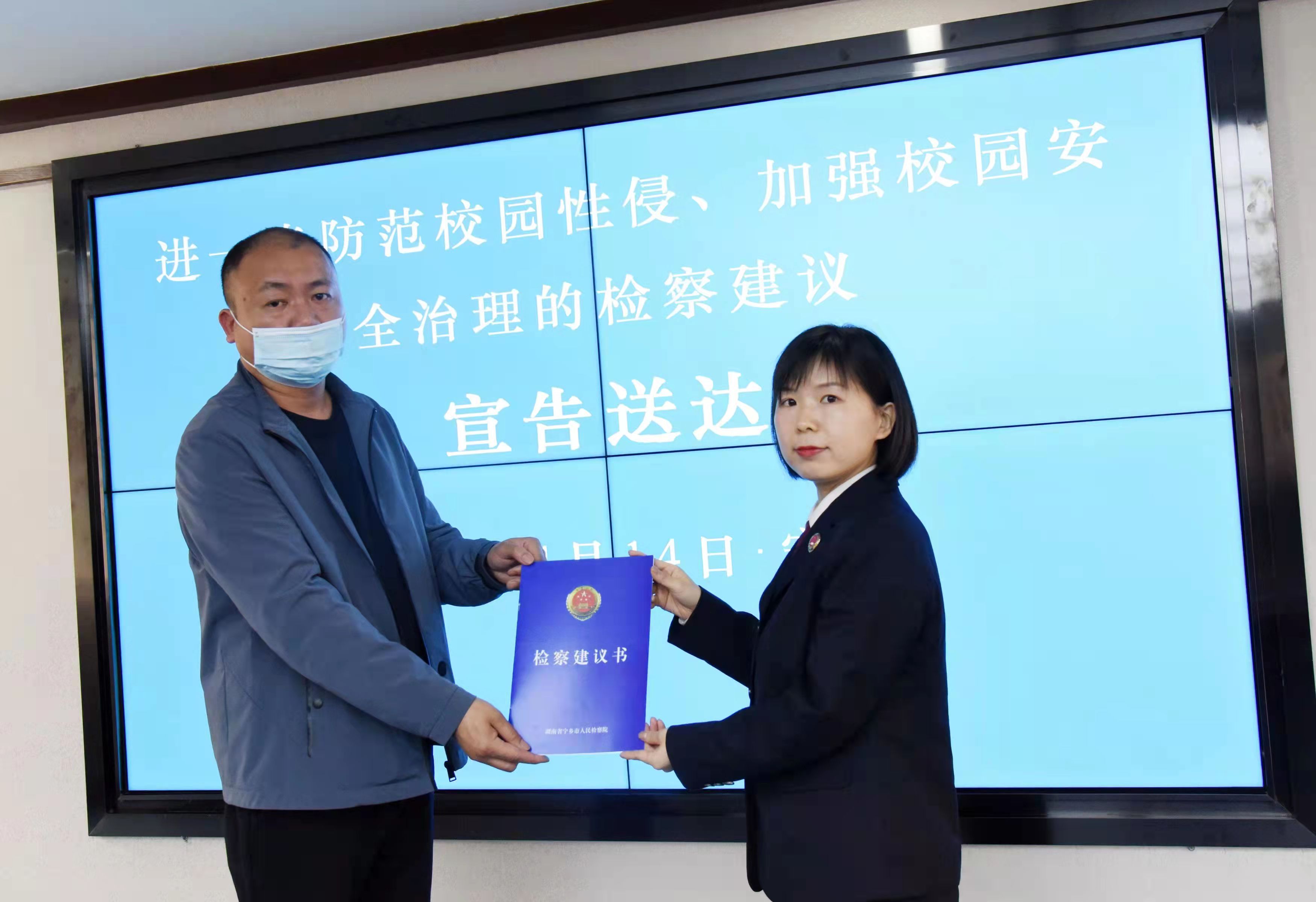 法制周报·新湖南讯(记者 李翔 见习记者 廖悠悠 通讯员 杨婷)“近年来,我院在办理未成年人遭受性侵害的案件中,发现存在部分学校教职工或共同家庭生活成员侵害未成年人现象,这暴露出你们在落实‘一号检察建议’、强制报告制度等防范未成年人遭受性侵害方面还存在一些问题。”4月14日,在宁乡市检察院五楼多功能会议室举行的检察建议公开宣告送达现场,该院第一检察部主任朱智勇向检察建议送达单位市民政局、市教育局以及相关学校介绍公开宣告的主要目的和内容,并展开释法说理。
