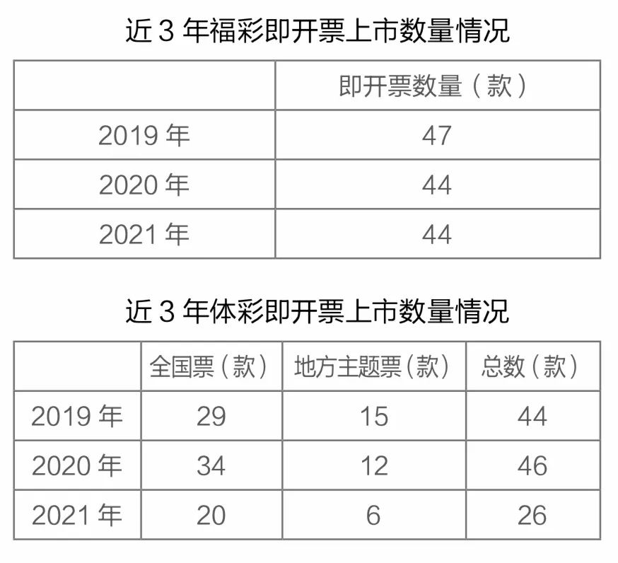 就游戏数量来看,当前,全国彩票市场上销售的即开票游戏数量约在200—300款之间,其中福彩“刮刮乐”约150余款,体彩“顶呱刮”约100多款。