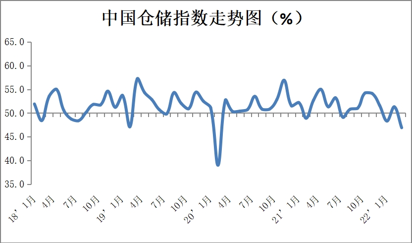 中国物流与采购联合会与中储发展股份有限公司联合调查的中国仓储指数2022年3月份为46.9%,较上月回落4.4个百分点。各分项指数中,业务量指数、收费价格指数、主营业务成本指数及平均库存周转次数指数较上月有所回升,其余指数均有不同程度的回落。
