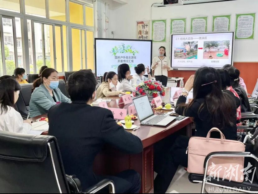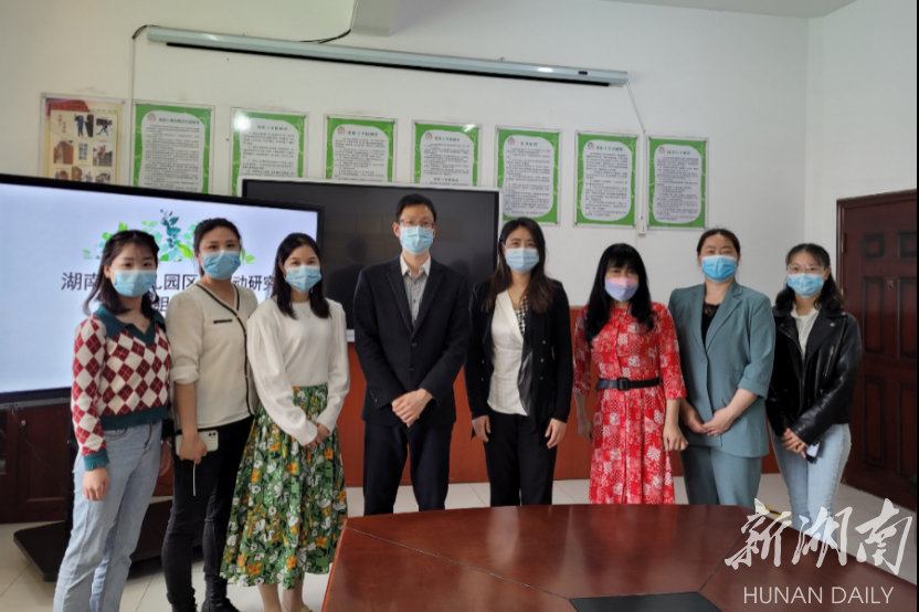 新湖南客户端4月25日讯(通讯员 丁瑜)为进一步贯彻落实《3-6岁儿童学习与发展指南》精神,切实提升保教质量,完善落实园所区域活动研究,提升园所区域游戏质量。4月22日上午,湖南省学前教育学会秘书长、课程研发中心主任路奇教授,省学前教育学会课程研发中心专员周圆老师,教育研究中心潘科老师,黄兴镇中心学校幼教专干李新华等“湖南省幼儿园区域活动研究”课题组成员,来到了长沙县黄兴镇中心幼儿园开展了研讨活动。