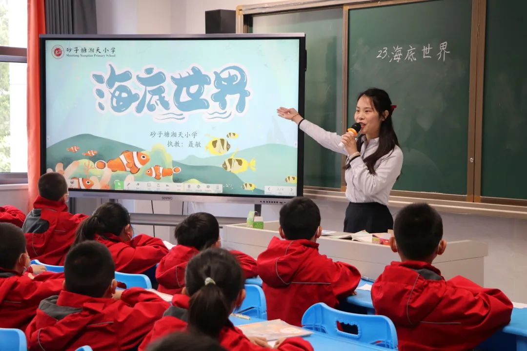 砂子塘湘天小学聂敏老师带着1901班的孩子们畅游了《海底世界》,聂老师用任务式模式推进课堂,学生自主合作感受海洋世界中动物的活动方式,体会语言的生动有趣并能说出第四自然段是如何围绕一句话把中心意思写清楚的。聂老师准确地把握了本课的语文要素,深刻剖析了教材,切实关注学情。